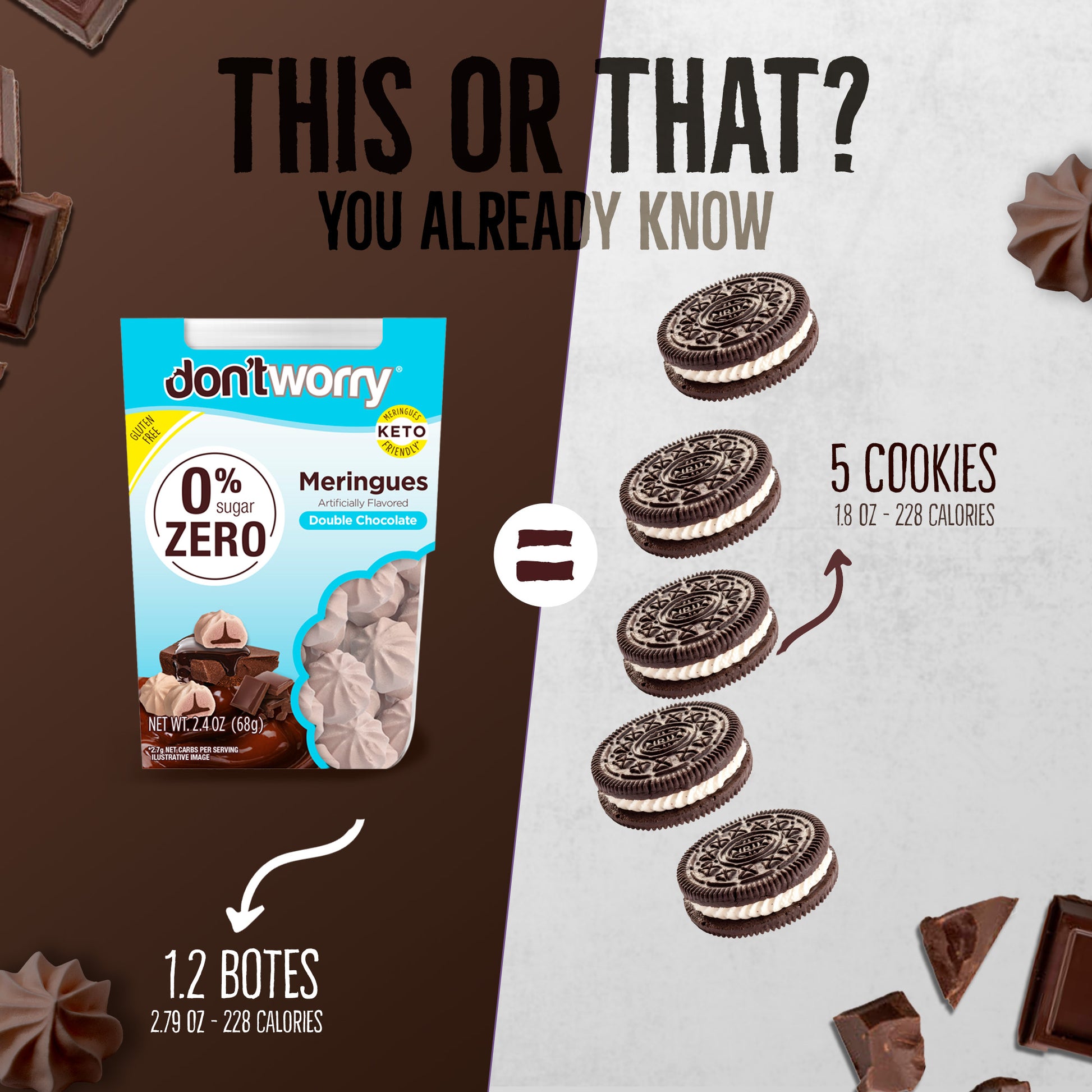 Indulge in your favorites with our ZERO line: rich chocolate, creamy vanilla, nutty hazelnut, and classic cookies & cream. Each meringue is airy, flavorful, and sugar-free. Enjoy the taste of dessert without the crash—just 1 to 4 calories per piece and no guilt attached. Keep a pack in your pantry, gym bag, or office drawer for instant joy.