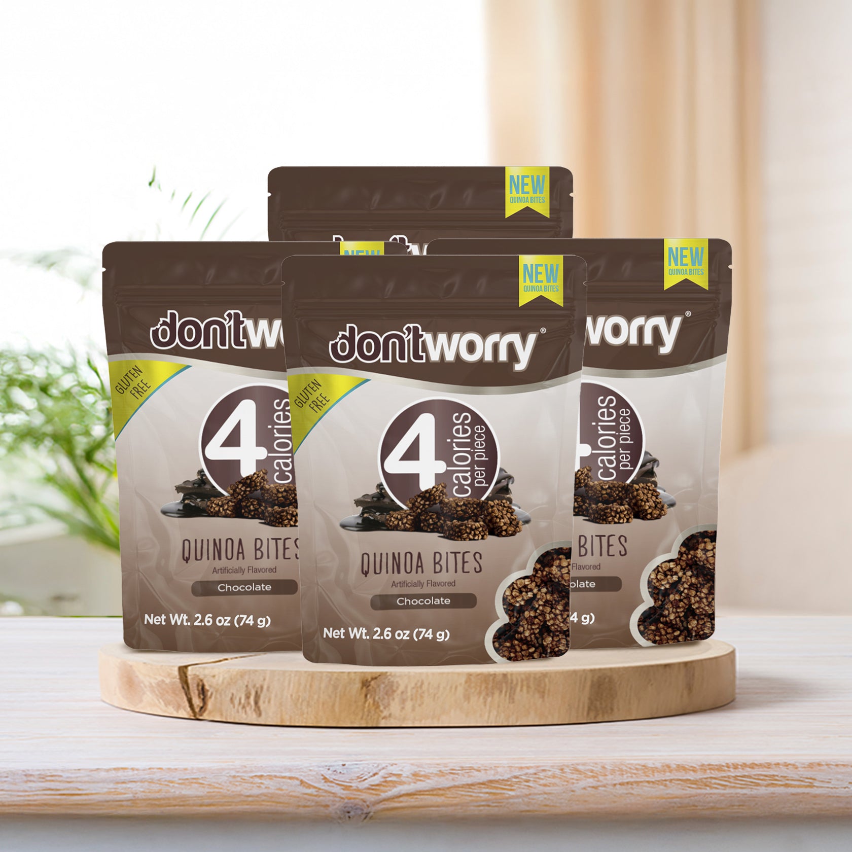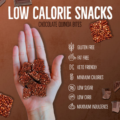 This pack brings you four full-size bags of our fan-favorite Chocolate Quinoa Bites. Each crisp, chocolaty piece has only 5 calories and is packed with plant-powered energy. Made with real superfoods, it's the perfect snack for those on-the-go, post-workout, or at your desk. Clean indulgence, redefined.
