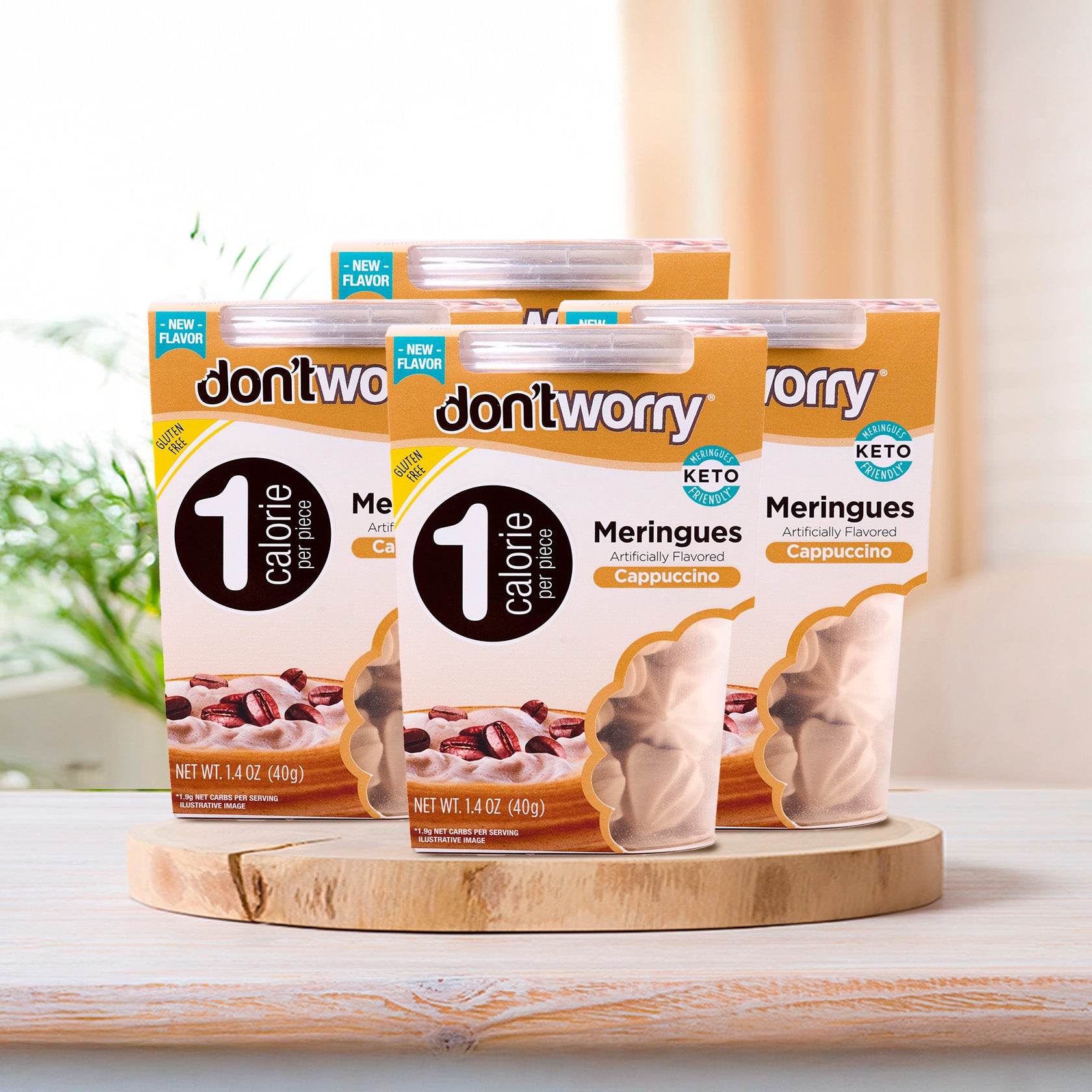 Love coffee? This 4-pack of cappuccino meringues brings rich espresso flavor in sugar-free, gluten-free bites. Just 1 calorie each. A crunchy, creamy coffeehouse treat you can enjoy anytime—guilt-free and delicious.