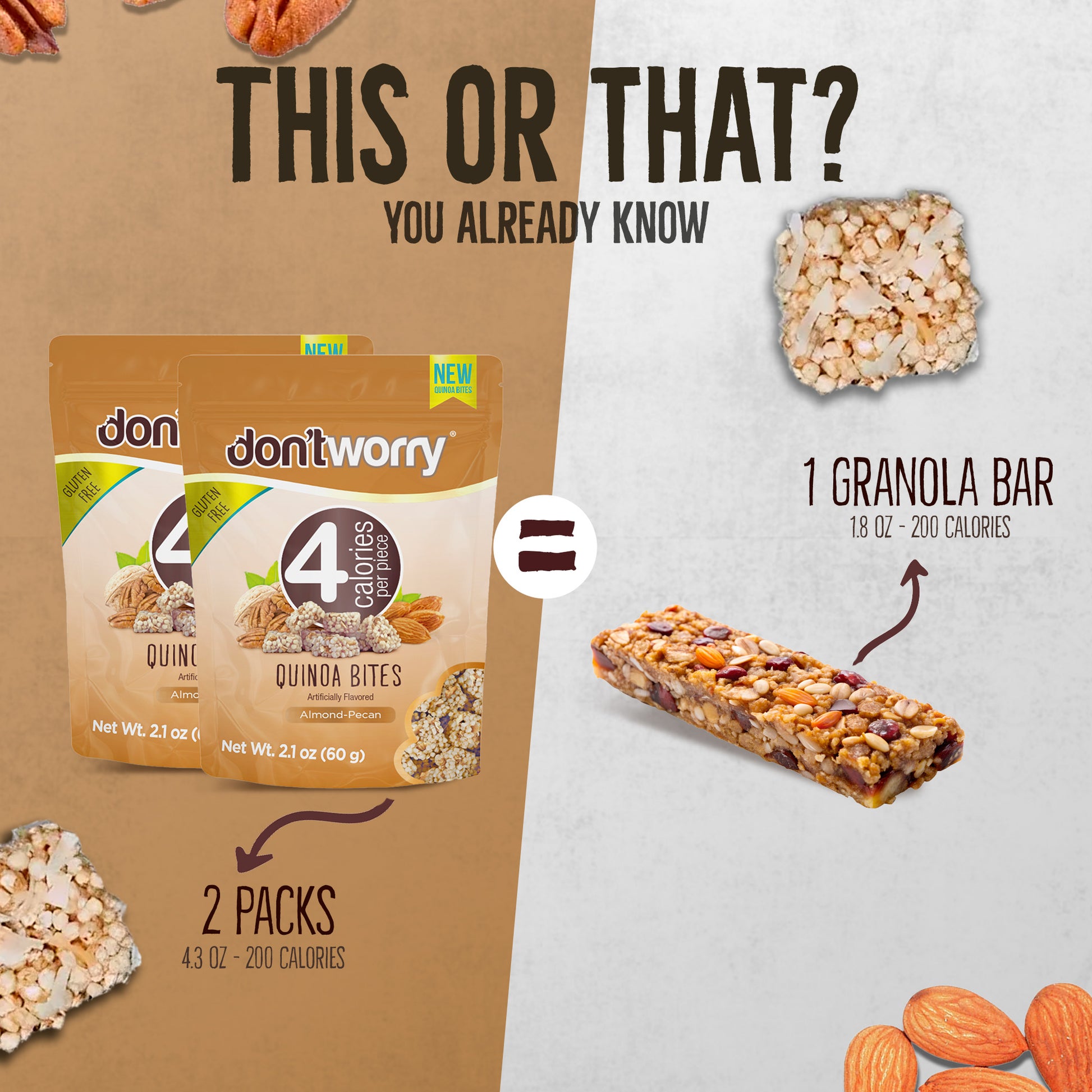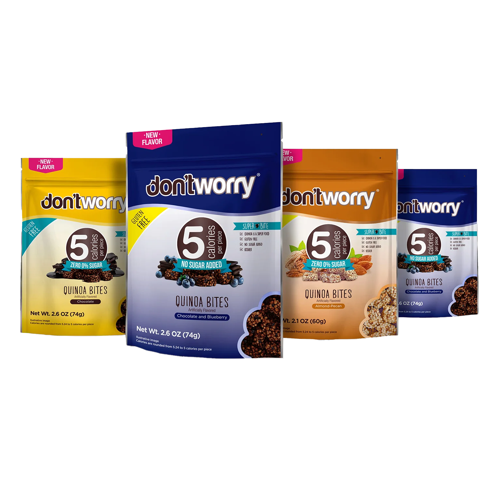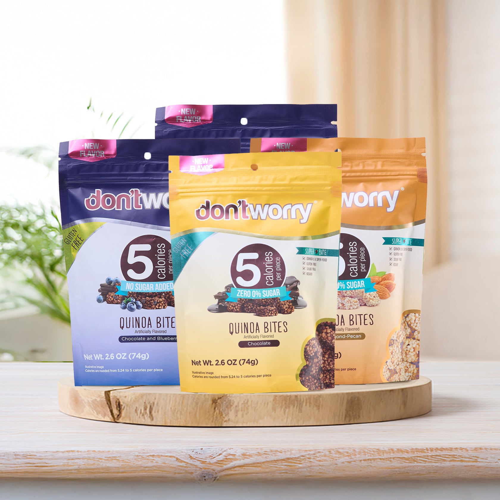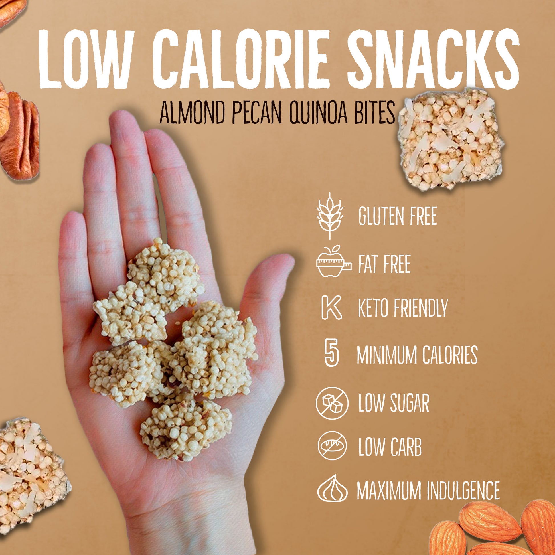 This crunchy 4-pack gives you the best of three guilt-free worlds—fruity blueberry, rich chocolate, and nutty almond-pecan. These quinoa bites are light, clean, and only 4–5 calories each, making them ideal for low-sugar lifestyles. Take them on the go or snack between meals to stay fueled, satisfied, and fully delicious.