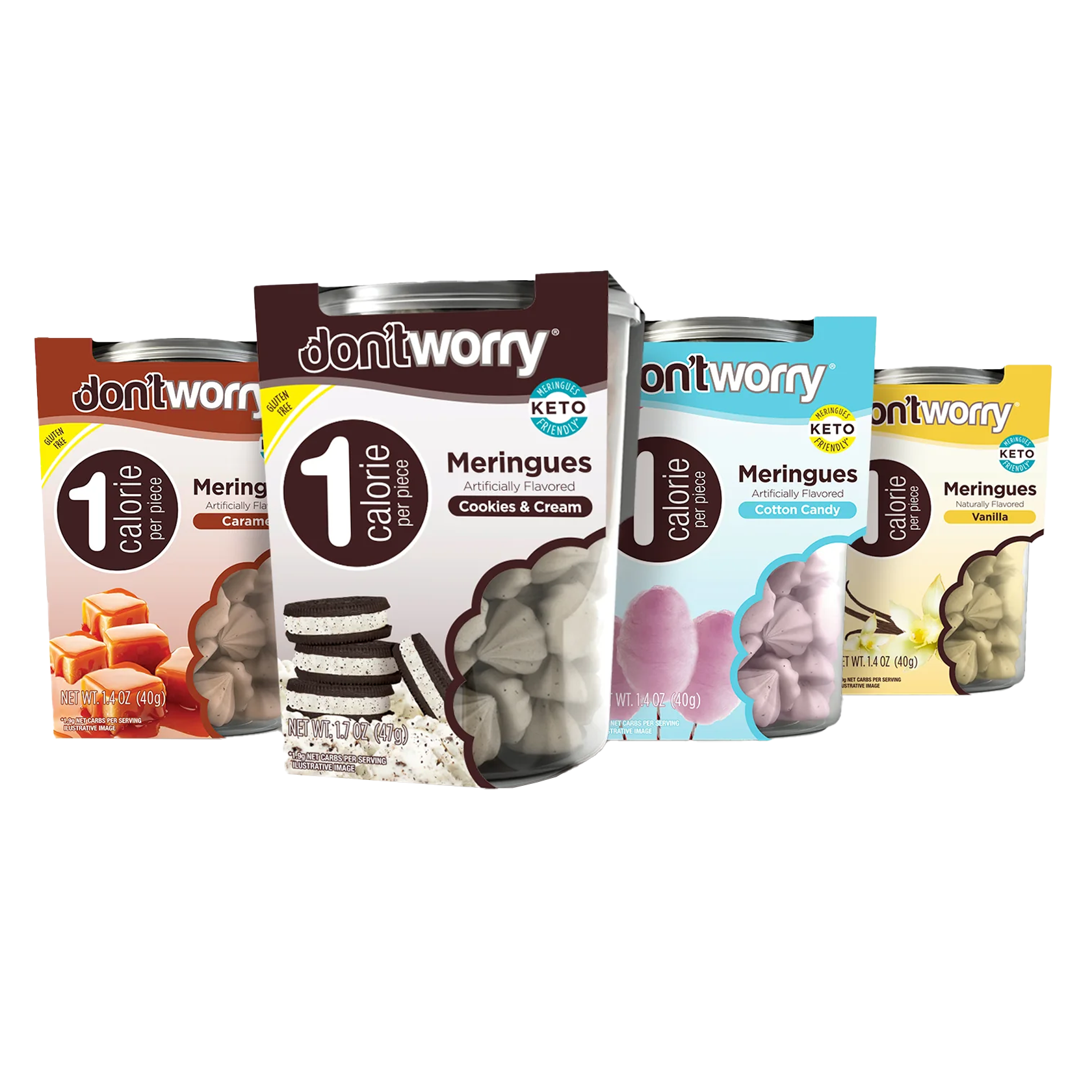 100% GUILT FREE SNACKING! As little as ONE calorie per piece of merengue cookies is truly rare for such great tasting delight! Carefully crafted for enjoying at home, school, work, as a dessert, or as healthy snacks. DON'T WORRY, SNACK HAPPY!