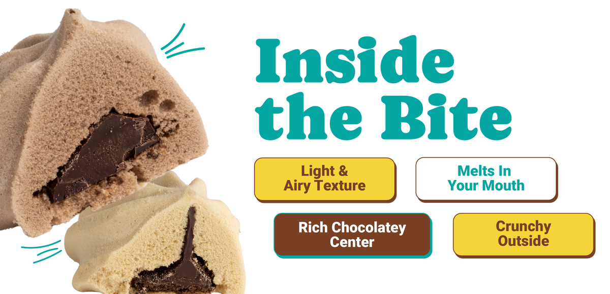 Hazelnut Chocolate Meringue Cookies: Egg whites, maltitol, soluble fiber, inulin, allulose, fructose, chocolate filling (maltitol, hydrogenated vegetable fat, cocoa powder processed with alkali, cocoa powder, milk fat, lactic acid esters of mono- and diglycerides of fatty acids, soy lecithin, natural vanilla extract), artificial flavor and caramel color.