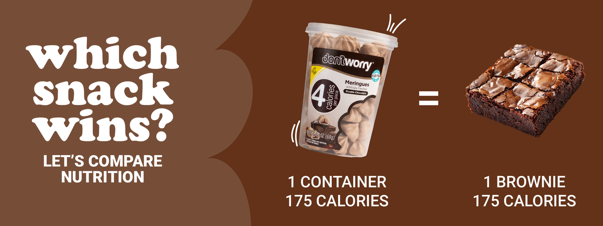 Double Chocolate Meringue Cookies: Egg whites, maltitol, soluble fiber, inulin, allulose, fructose, chocolate filling (maltitol, hydrogenated vegetable fat, cocoa powder processed with alkali, cocoa powder, milk fat, lactic acid esters of mono- and diglycerides of fatty acids, soy lecithin, natural vanilla extract), artificial flavor, caramel color, FD&C Yellow No. 5, FD&C Yellow No. 6, FD&C Red No. 40 and FD&C Blue No. 2.